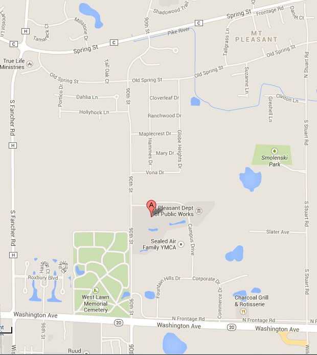 If you are traveling on STH 20/Washington Avenue turn north onto 90th Street and continue for .4 miles and you will see our department on your right side. If you are traveling on CTH C/Spring St turn south on 90th Street and continue for .7 miles. You will see our department on your left side. View a map (PDF)